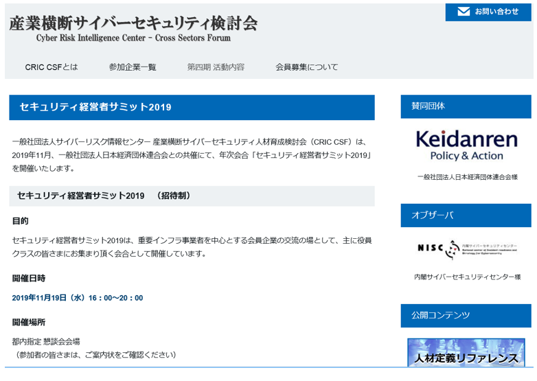 | URL | https://cyber-risk.or.jp/cric-csf/summit2024.html |