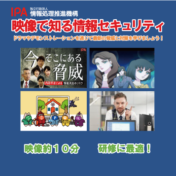 情報セキュリティ上の様々な脅威と対策をドラマなどを通じて学べる映像シリーズです。各動画はYouTube内の「IPA Channel」で公開しているほか、主な動画は動画ファイルの提供も行っております。