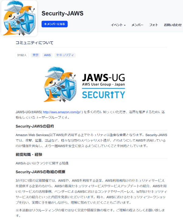 Amazon Web Services(以下AWS)を活用する上でセキュリティは重要な要素となります。Security-JAWSでは、攻撃、監査、認証など、様々な分野のスペシャリスト達が、どのようにしてAWSを活用しているのか情報を共有し、より一層AWSを安全に使えるようにしていくことを目的としています。
