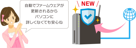ソフトウェアの性能改善やセキュリティ対策などファームウェアが提供された場合、自動でファームウェアの更新を行うため、常に最新状態でご利用いただけます。