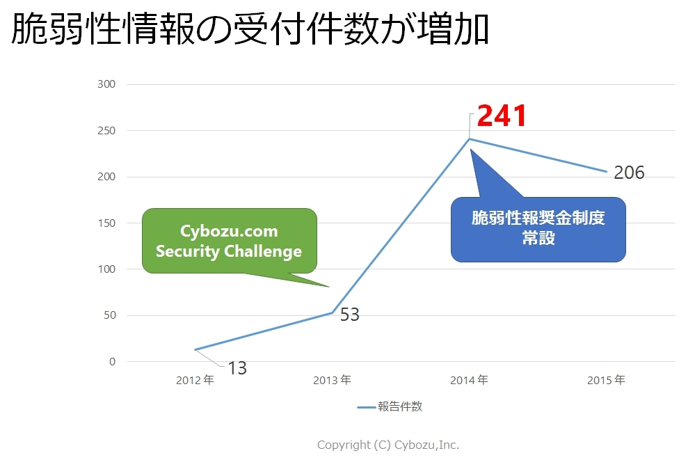 サイボウズの場合、脆弱性報奨金制度を開始する前に比べて、15