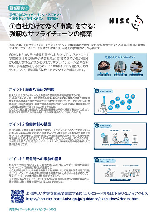 今回、経営層向けコンテンツの第二弾として「事例で学ぶサイバーリスクマネジメント~経営トップがすべきこと 実践編」を公開いたします。